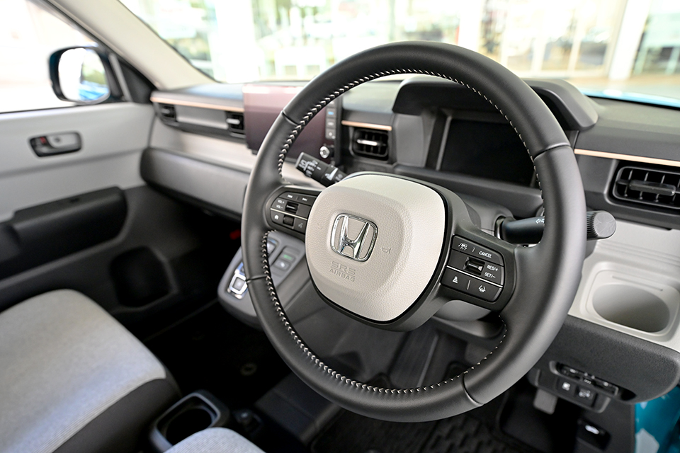 家族を乗せる車だからこそ、安全性は何より大切です。N-ONE e: にはHondaの先進安全技術「Honda SENSING」が標準装備されており、衝突の危険を察知してブレーキをサポートしたり、誤って急発進しそうになった際に抑制してくれたりと、日常の運転をしっかり支えてくれます。視界が広く、車両感覚もつかみやすいため、運転に慣れていない方でも安心してハンドルを握ることができます。
